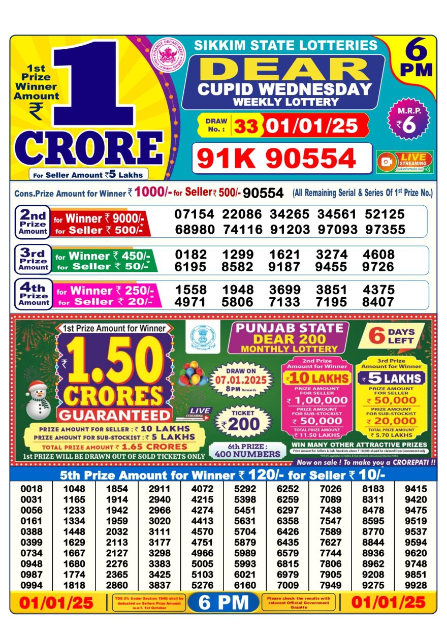 Dear Cupid Wednesday Weekly 6 PM Result 1.1.25