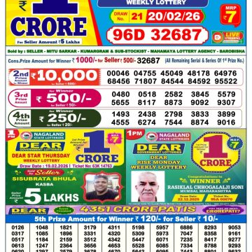 Nagaland State Lotteries was established in the year 1972 under the supervision of the Finance Department to generate a dependable source of revenue for the State Government. Nagaland State Lottery is held every day of the week at three different times of the day, Morning, Day, and Evening. Every day, the lottery is held under a different name with some difference in the prize money with the top prize worth ₹1 Crore (including Super Prize amount). The daily lotteries hosted by Nagaland State include Dear Morning Lottery, Dear Day Lottery, and Dear Evening Lottery which costs 7 Rupees for each ticket (6 Rupees Earlier)