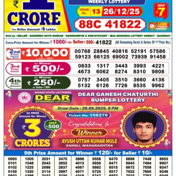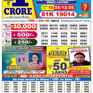 Nagaland State Lotteries was established in the year 1972 under the supervision of the Finance Department to generate a dependable source of revenue for the State Government. Nagaland State Lottery is held every day of the week at three different times of the day, Morning, Day, and Evening. Every day, the lottery is held under a different name with some difference in the prize money with the top prize worth ₹1 Crore (including Super Prize amount). The daily lotteries hosted by Nagaland State include Dear Morning Lottery, Dear Day Lottery, and Dear Evening Lottery which costs 6 Rupees for each ticket.