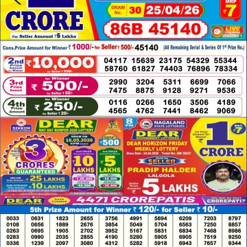 was established in the year 1972 under the supervision of the Finance Department to generate a dependable source of revenue for the State Government. Nagaland State Lottery is held every day of the week at three different times of the day, Morning, Day, and Evening. Every day, the lottery is held under a different name with some difference in the prize money with the top prize worth ₹1 Crore (including Super Prize amount). The daily lotteries hosted by Nagaland State include Dear Morning Lottery, Dear Day Lottery, and Dear Evening Lottery which costs 7 Rupees for each ticket (6 Rupees Earlier)