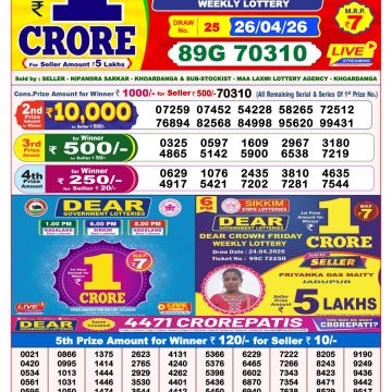 Nagaland State Lotteries was established in the year 1972 under the supervision of the Finance Department to generate a dependable source of revenue for the State Government. Nagaland State Lottery is held every day of the week at three different times of the day, Morning, Day, and Evening. Every day, the lottery is held under a different name with some difference in the prize money with the top prize worth ₹1 Crore (including Super Prize amount). The daily lotteries hosted by Nagaland State include Dear Morning Lottery, Dear Day Lottery, and Dear Evening Lottery which costs 7 Rupees for each ticket (6 Rupees Earlier)