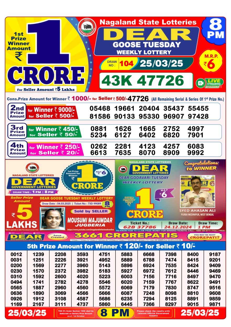 Dear goose Weekly Lottery 8PM Result 25.3.25