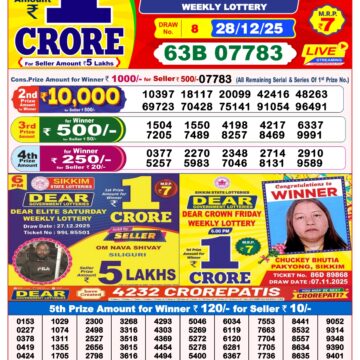 Dear Horizon Weekly Lottery 8pm Result 26.12.2025