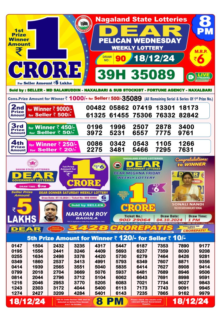 Dear Pelican Wednesday Weekly 8 PM Result 18.12.24