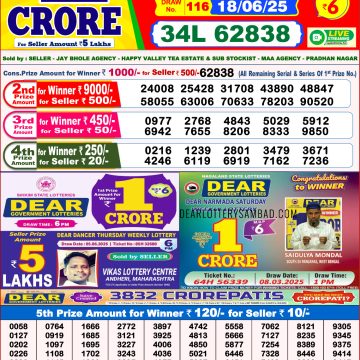 Nagaland State Lotteries was established in the year 1972 under the supervision of the Finance Department to generate a dependable source of revenue for the State Government. Nagaland State Lottery is held every day of the week at three different times of the day, Morning, Day, and Evening. Every day, the lottery is held under a different name with some difference in the prize money with the top prize worth ₹1 Crore (including Super Prize amount). The daily lotteries hosted by Nagaland State include Dear Morning Lottery, Dear Day Lottery, and Dear Evening Lottery which costs 6 Rupees for each ticket.