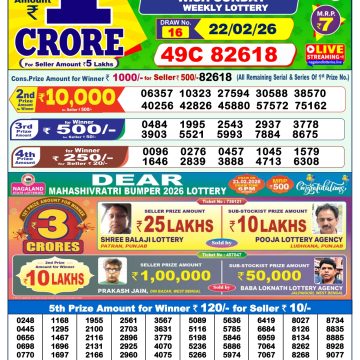 was established in the year 1972 under the supervision of the Finance Department to generate a dependable source of revenue for the State Government. Nagaland State Lottery is held every day of the week at three different times of the day, Morning, Day, and Evening. Every day, the lottery is held under a different name with some difference in the prize money with the top prize worth ₹1 Crore (including Super Prize amount). The daily lotteries hosted by Nagaland State include Dear Morning Lottery, Dear Day Lottery, and Dear Evening Lottery which costs 7 Rupees for each ticket (6 Rupees Earlier)