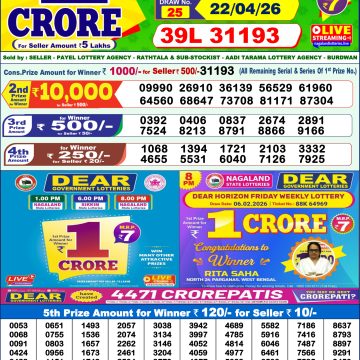 was established in the year 1972 under the supervision of the Finance Department to generate a dependable source of revenue for the State Government. Nagaland State Lottery is held every day of the week at three different times of the day, Morning, Day, and Evening. Every day, the lottery is held under a different name with some difference in the prize money with the top prize worth ₹1 Crore (including Super Prize amount). The daily lotteries hosted by Nagaland State include Dear Morning Lottery, Dear Day Lottery, and Dear Evening Lottery which costs 7 Rupees for each ticket (6 Rupees Earlier)