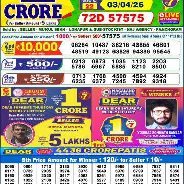 was established in the year 1972 under the supervision of the Finance Department to generate a dependable source of revenue for the State Government. Nagaland State Lottery is held every day of the week at three different times of the day, Morning, Day, and Evening. Every day, the lottery is held under a different name with some difference in the prize money with the top prize worth ₹1 Crore (including Super Prize amount). The daily lotteries hosted by Nagaland State include Dear Morning Lottery, Dear Day Lottery, and Dear Evening Lottery which costs 7 Rupees for each ticket (6 Rupees Earlier)