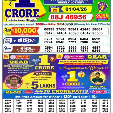 was established in the year 1972 under the supervision of the Finance Department to generate a dependable source of revenue for the State Government. Nagaland State Lottery is held every day of the week at three different times of the day, Morning, Day, and Evening. Every day, the lottery is held under a different name with some difference in the prize money with the top prize worth ₹1 Crore (including Super Prize amount). The daily lotteries hosted by Nagaland State include Dear Morning Lottery, Dear Day Lottery, and Dear Evening Lottery which costs 7 Rupees for each ticket (6 Rupees Earlier)