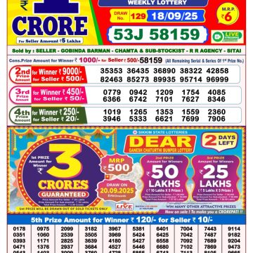 Nagaland State Lotteries was established in the year 1972 under the supervision of the Finance Department to generate a dependable source of revenue for the State Government. Nagaland State Lottery is held every day of the week at three different times of the day, Morning, Day, and Evening. Every day, the lottery is held under a different name with some difference in the prize money with the top prize worth ₹1 Crore (including Super Prize amount). The daily lotteries hosted by Nagaland State include Dear Morning Lottery, Dear Day Lottery, and Dear Evening Lottery which costs 6 Rupees for each ticket.
