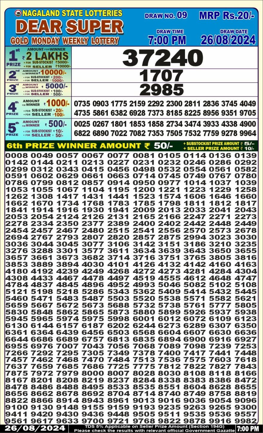 Nagaland State Lotteries was established in the year 1972 under the supervision of the Finance Department to generate a dependable source of revenue for the State Government. Nagaland State Lottery is held every day of the week at three different times of the day, Morning, Day, and Evening. Every day, the lottery is held under a different name with some difference in the prize money with the top prize worth ₹1 Crore (including Super Prize amount). The daily lotteries hosted by Nagaland State include Dear Morning Lottery, Dear Day Lottery, and Dear Evening Lottery which costs 6 Rupees for each ticket.