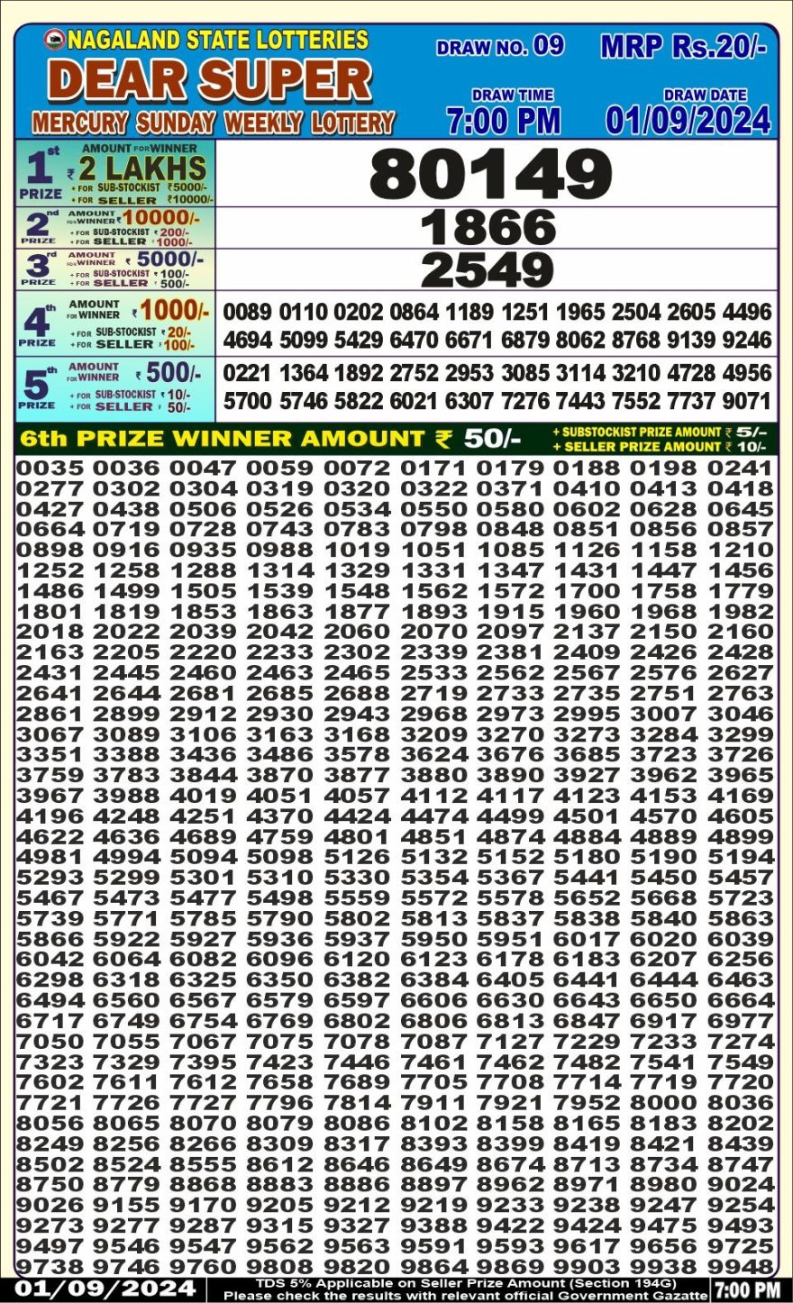 Nagaland State Lotteries was established in the year 1972 under the supervision of the Finance Department to generate a dependable source of revenue for the State Government. Nagaland State Lottery is held every day of the week at three different times of the day, Morning, Day, and Evening. Every day, the lottery is held under a different name with some difference in the prize money with the top prize worth ₹1 Crore (including Super Prize amount). The daily lotteries hosted by Nagaland State include Dear Morning Lottery, Dear Day Lottery, and Dear Evening Lottery which costs 6 Rupees for each ticket.