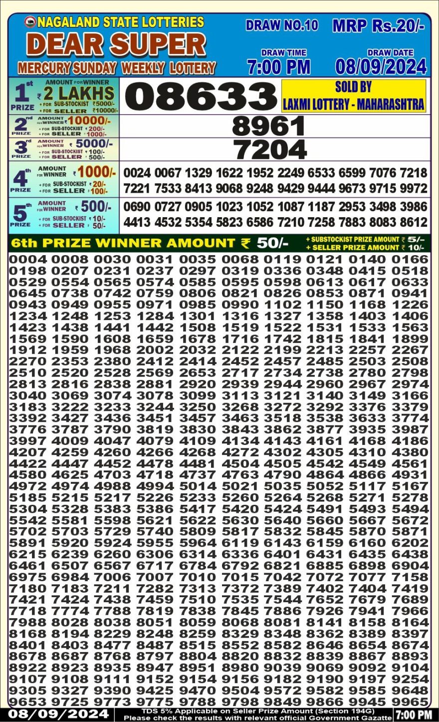 Nagaland State Lotteries was established in the year 1972 under the supervision of the Finance Department to generate a dependable source of revenue for the State Government. Nagaland State Lottery is held every day of the week at three different times of the day, Morning, Day, and Evening. Every day, the lottery is held under a different name with some difference in the prize money with the top prize worth ₹1 Crore (including Super Prize amount). The daily lotteries hosted by Nagaland State include Dear Morning Lottery, Dear Day Lottery, and Dear Evening Lottery which costs 6 Rupees for each ticket.