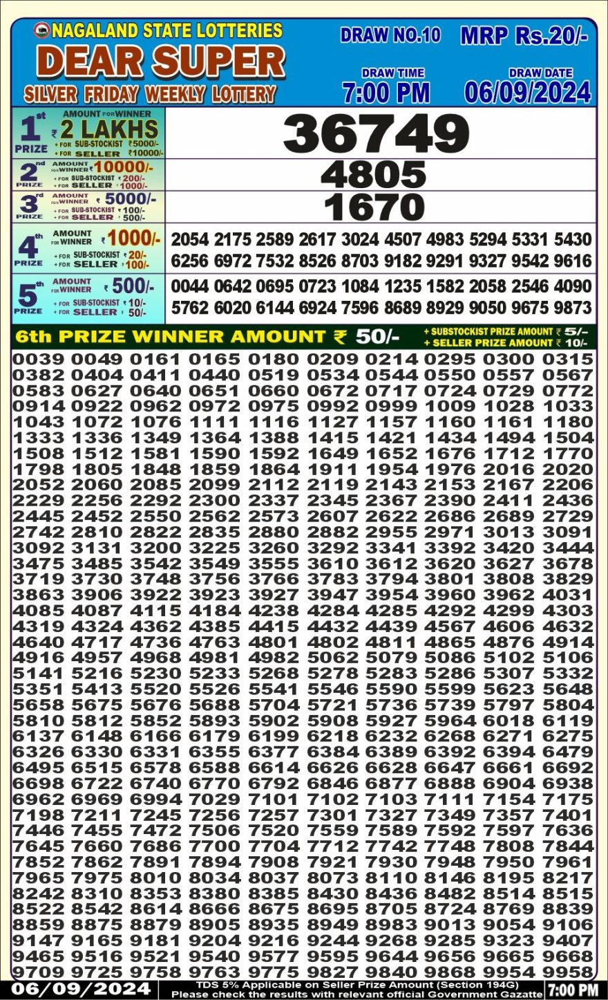 Nagaland State Lotteries was established in the year 1972 under the supervision of the Finance Department to generate a dependable source of revenue for the State Government. Nagaland State Lottery is held every day of the week at three different times of the day, Morning, Day, and Evening. Every day, the lottery is held under a different name with some difference in the prize money with the top prize worth ₹1 Crore (including Super Prize amount). The daily lotteries hosted by Nagaland State include Dear Morning Lottery, Dear Day Lottery, and Dear Evening Lottery which costs 6 Rupees for each ticket.