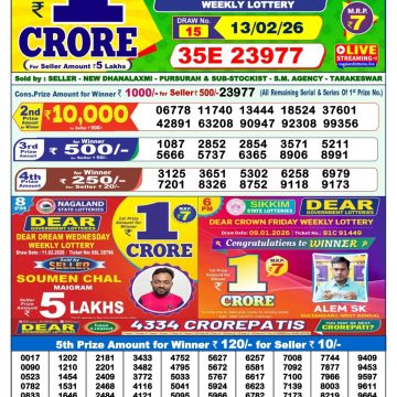 was established in the year 1972 under the supervision of the Finance Department to generate a dependable source of revenue for the State Government. Nagaland State Lottery is held every day of the week at three different times of the day, Morning, Day, and Evening. Every day, the lottery is held under a different name with some difference in the prize money with the top prize worth ₹1 Crore (including Super Prize amount). The daily lotteries hosted by Nagaland State include Dear Morning Lottery, Dear Day Lottery, and Dear Evening Lottery which costs 7 Rupees for each ticket (6 Rupees Earlier)