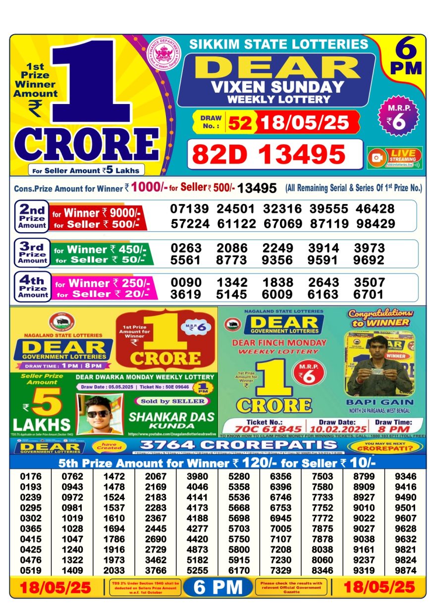 Dear vixen sunday weekly 6PM Result 18.5.2025