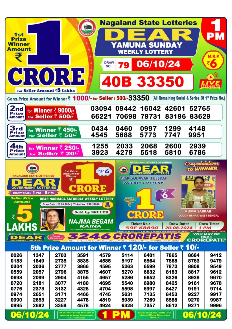Nagaland State Lotteries was established in the year 1972 under the supervision of the Finance Department to generate a dependable source of revenue for the State Government. Nagaland State Lottery is held every day of the week at three different times of the day, Morning, Day, and Evening. Every day, the lottery is held under a different name with some difference in the prize money with the top prize worth ₹1 Crore (including Super Prize amount). The daily lotteries hosted by Nagaland State include Dear Morning Lottery, Dear Day Lottery, and Dear Evening Lottery which costs 6 Rupees for each ticket.