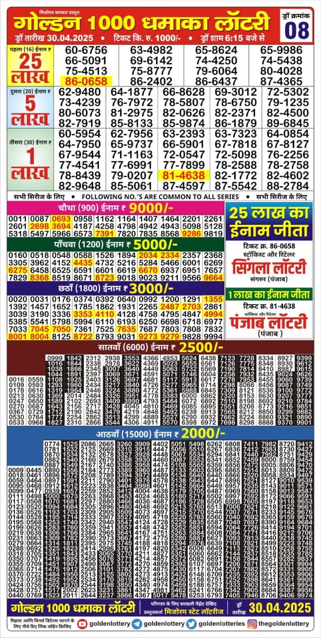 Golden 1000 gold monthly lottery result 30.4.25