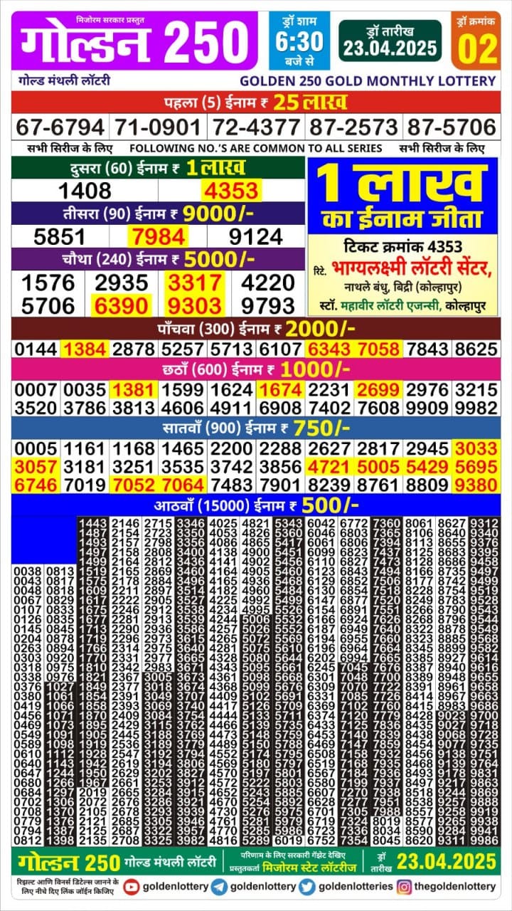 Nagaland State Lotteries was established in the year 1972 under the supervision of the Finance Department to generate a dependable source of revenue for the State Government. Nagaland State Lottery is held every day of the week at three different times of the day, Morning, Day, and Evening. Every day, the lottery is held under a different name with some difference in the prize money with the top prize worth ₹1 Crore (including Super Prize amount). The daily lotteries hosted by Nagaland State include Dear Morning Lottery, Dear Day Lottery, and Dear Evening Lottery which costs 6 Rupees for each ticket.
