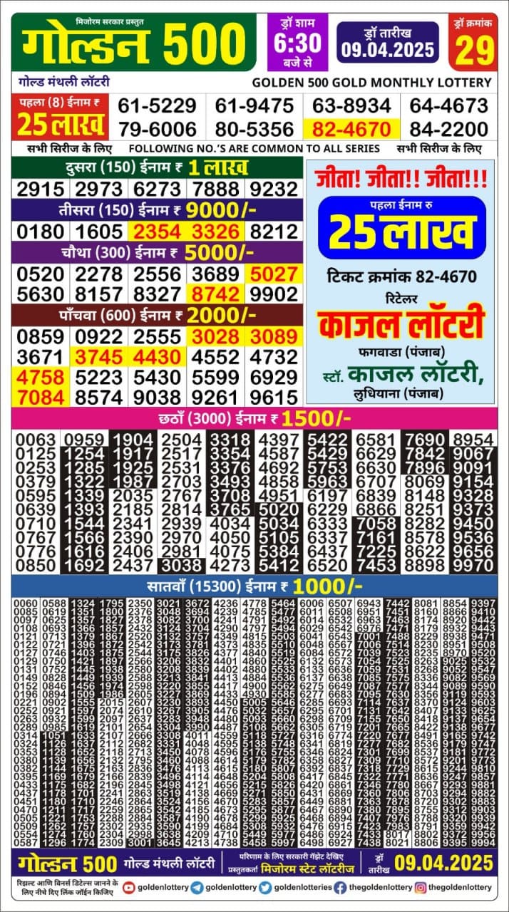 Golden 500 gold monthly lottery result 9.4.25