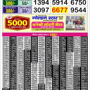 Golden Star Weekly Lottery Result 7pm 30.03.2026