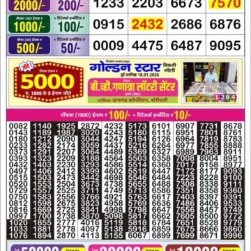 Golden Star Weekly Lottery Result 9pm 20.01.2026