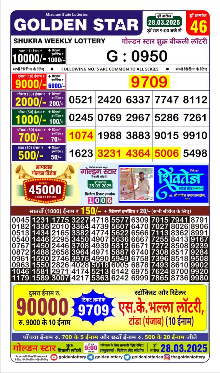Nagaland State Lotteries was established in the year 1972 under the supervision of the Finance Department to generate a dependable source of revenue for the State Government. Nagaland State Lottery is held every day of the week at three different times of the day, Morning, Day, and Evening. Every day, the lottery is held under a different name with some difference in the prize money with the top prize worth ₹1 Crore (including Super Prize amount). The daily lotteries hosted by Nagaland State include Dear Morning Lottery, Dear Day Lottery, and Dear Evening Lottery which costs 6 Rupees for each ticket.