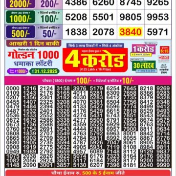 Golden Star Weekly Lottery Result 9pm 30.12.2025
