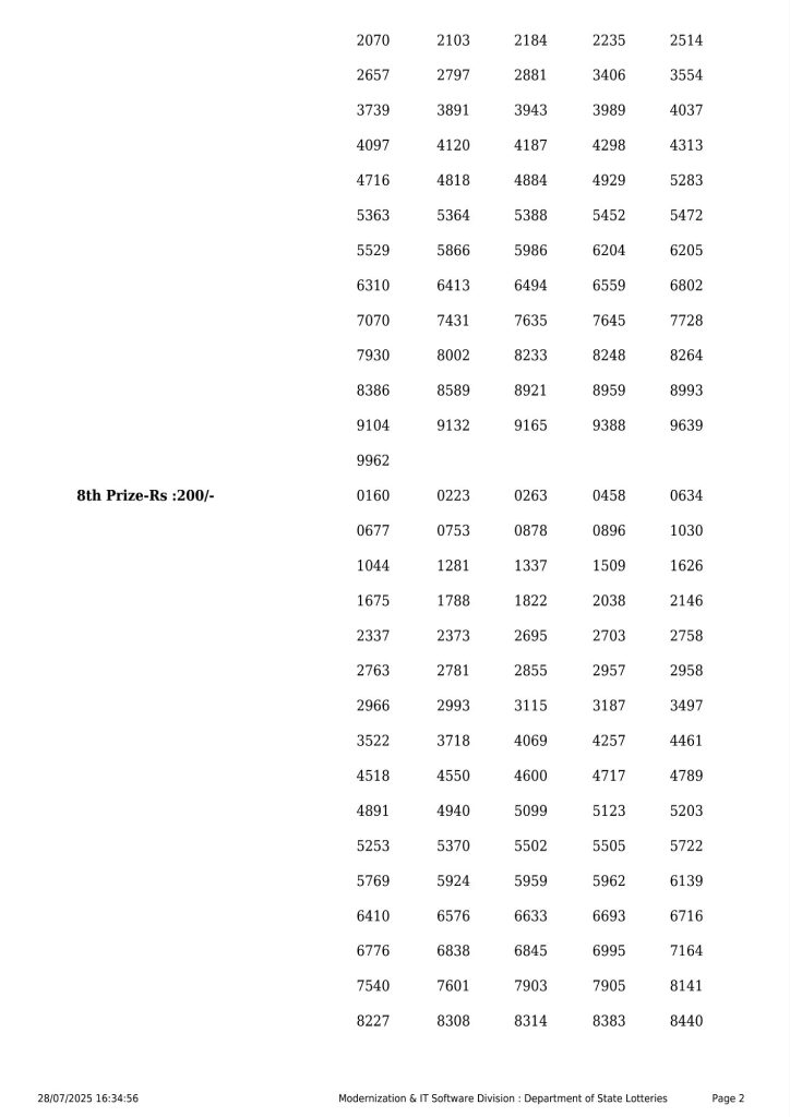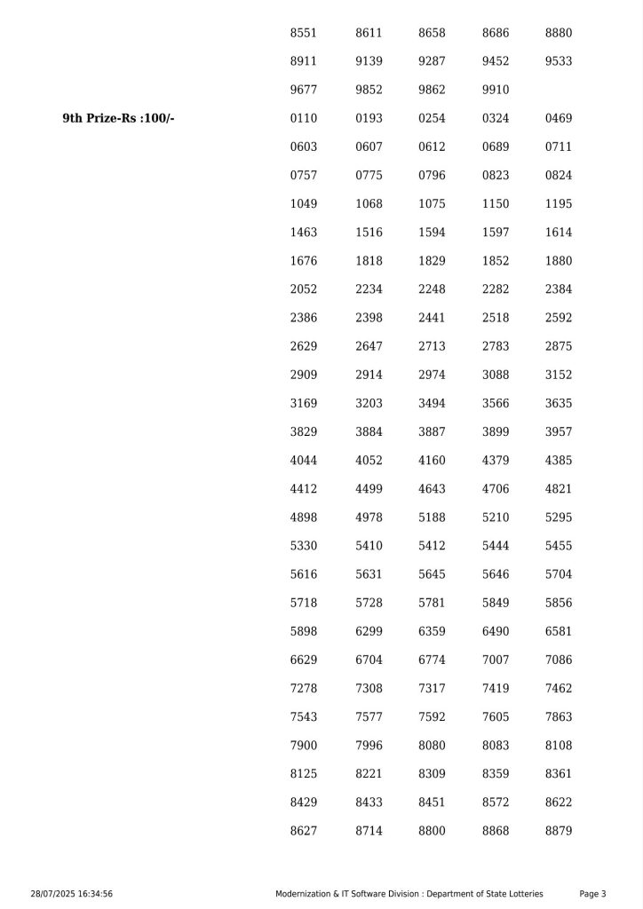 Kerala Lottery Result BT 13 3PM Today 28.07.2025