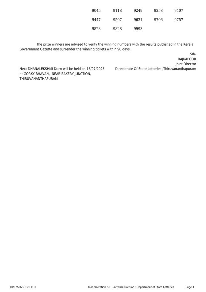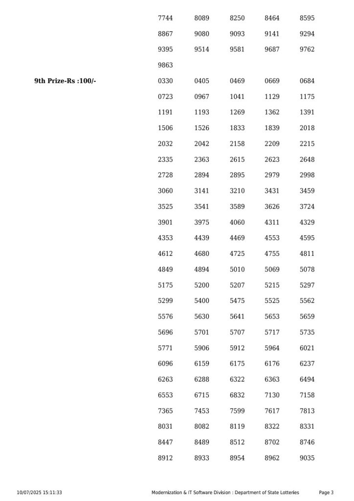Kerala Lottery Result DL 9 3PM Today 10.07.2025