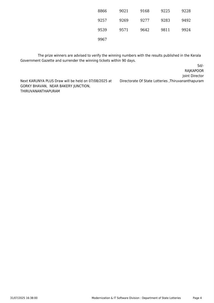 Kerala Lottery Result KN 583 3PM Today 31.07.2025