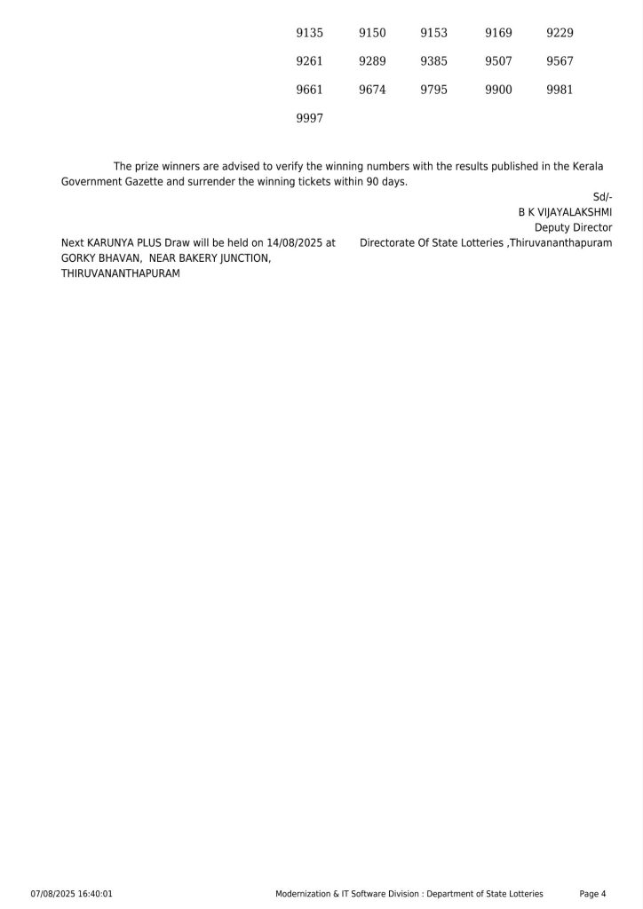 Kerala Lottery Result KN 584 3PM Today 07.08.2025