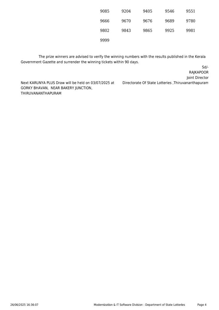 When checking results, make sure to verify your ticket’s alphabet series (such as KN, KL, KP) and the exact six-digit number to confirm your winnings. For prizes above ₹10,000, winners are required to submit their original ticket, claim form, and valid ID at the district lottery office within 30 days from the announcement date.