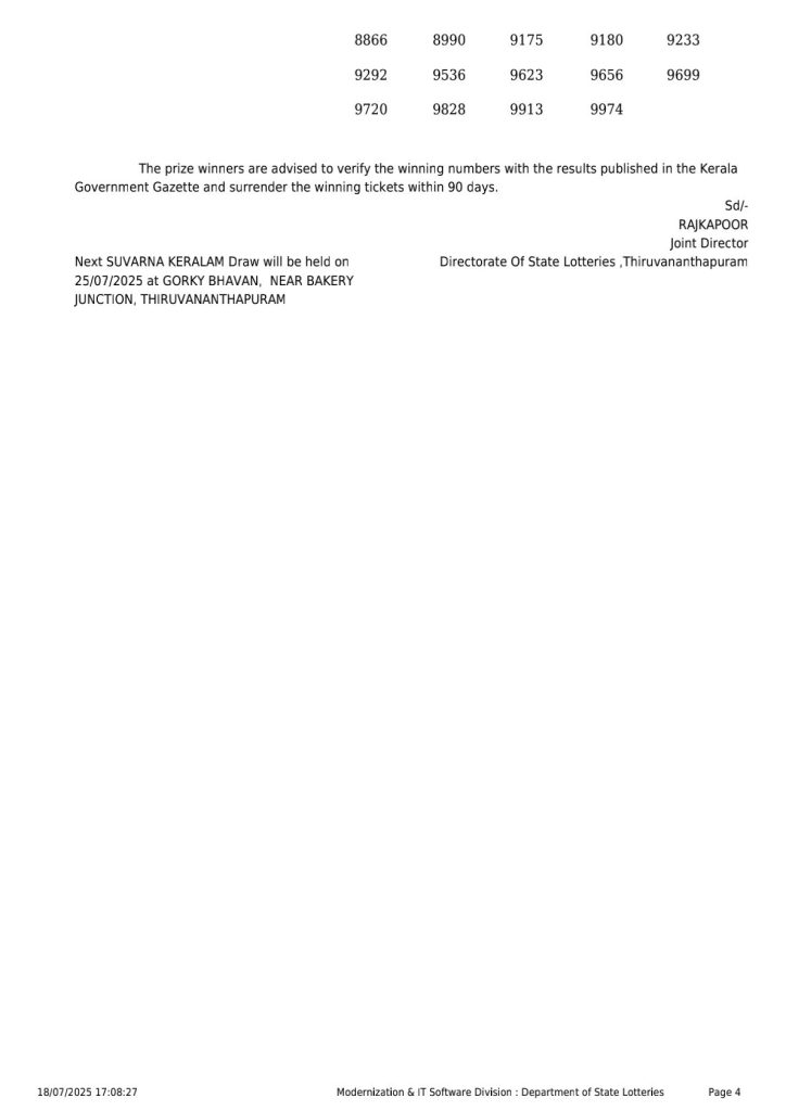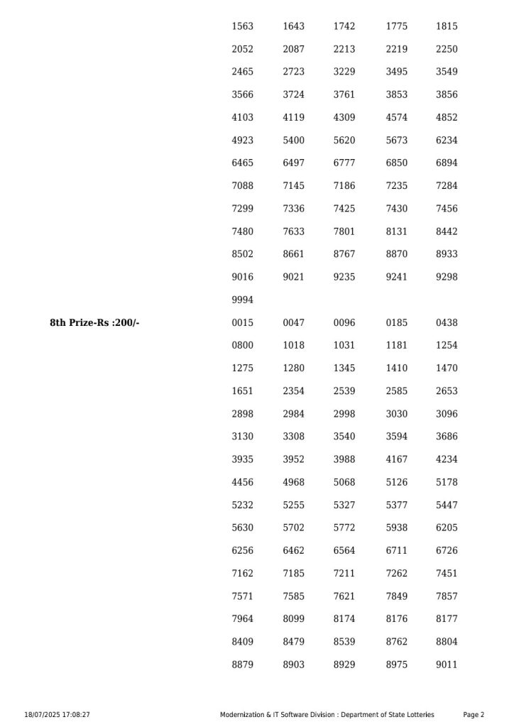 Kerala Lottery Result SK 12 3PM Today 18.07.2025