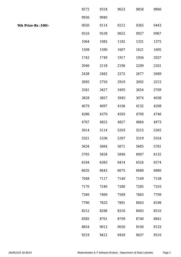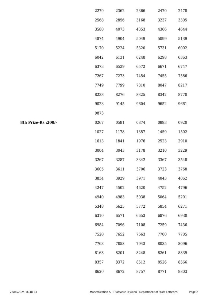 Kerala Lottery Result SK 20 3PM Today 26.09.2025
