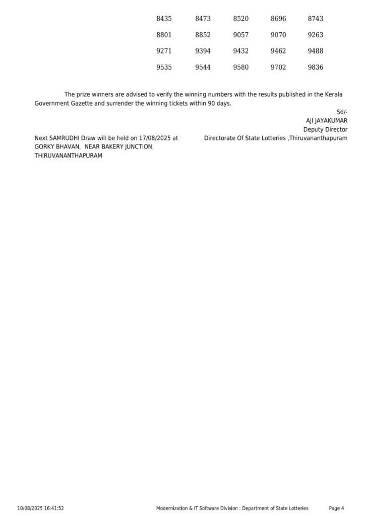 Kerala Lottery Result SM 15 3PM Today 10.08.2025