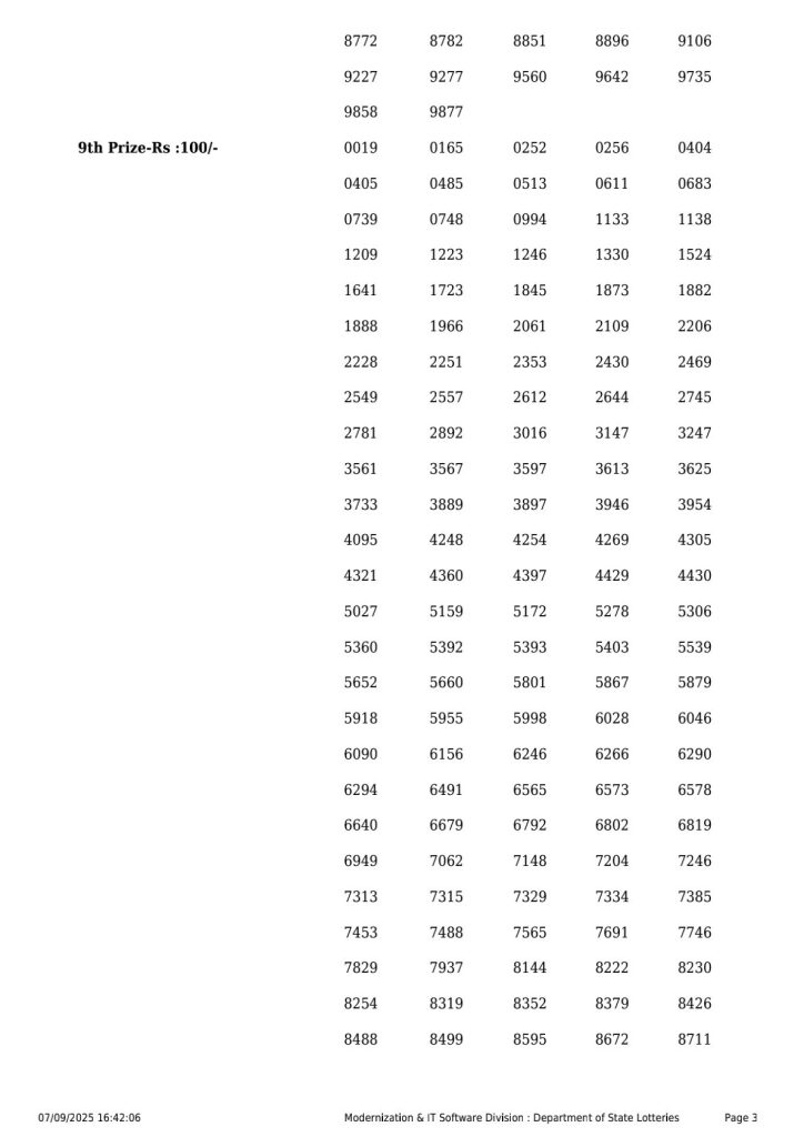 Kerala Lottery Result SM 19 3PM Today 07.09.2025