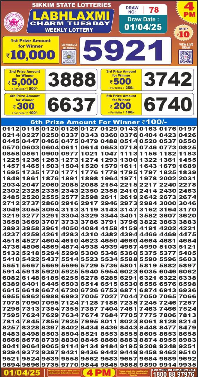 Nagaland State Lotteries was established in the year 1972 under the supervision of the Finance Department to generate a dependable source of revenue for the State Government. Nagaland State Lottery is held every day of the week at three different times of the day, Morning, Day, and Evening. Every day, the lottery is held under a different name with some difference in the prize money with the top prize worth ₹1 Crore (including Super Prize amount). The daily lotteries hosted by Nagaland State include Dear Morning Lottery, Dear Day Lottery, and Dear Evening Lottery which costs 6 Rupees for each ticket.