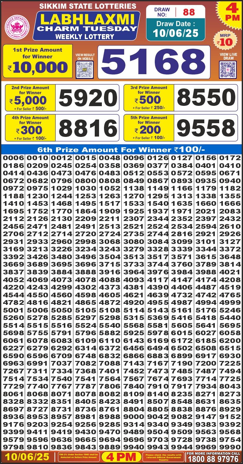 Labh Laxmi charm weekly 4PM Result 10.06.2025
