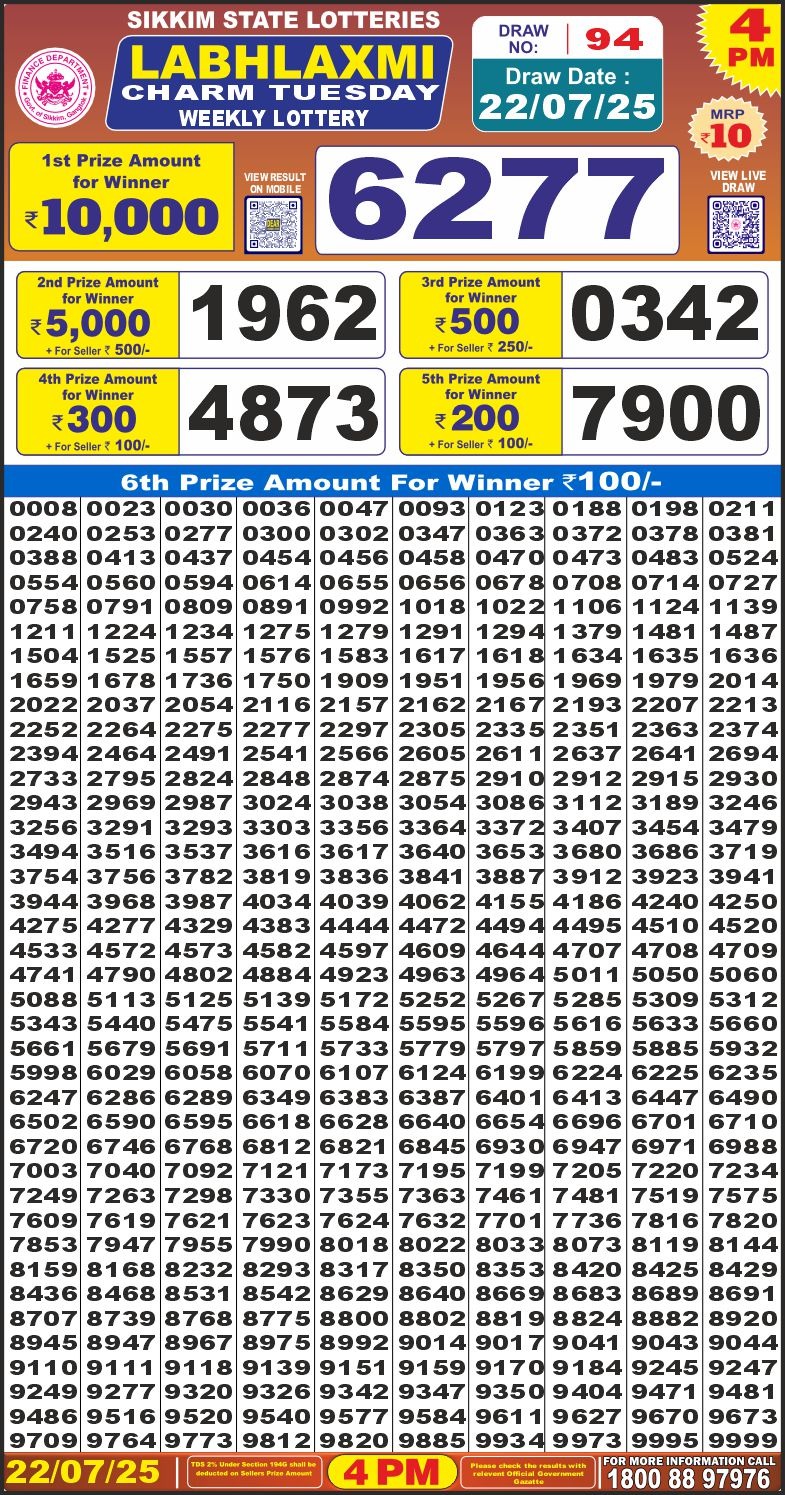 Labh Laxmi charm weekly 4PM Result 22.07.2025