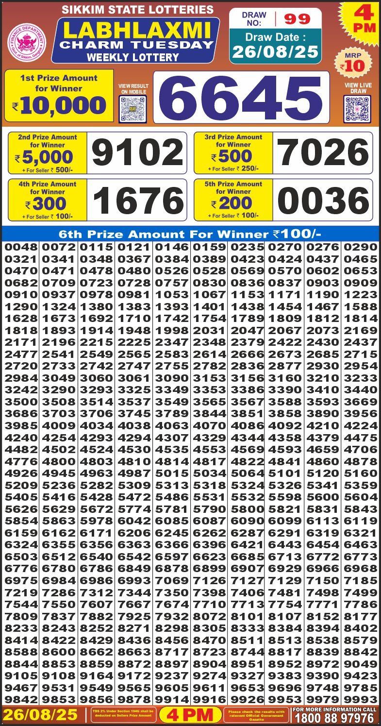 Labh Laxmi Charm Weekly 4pm Result 26.08.2025