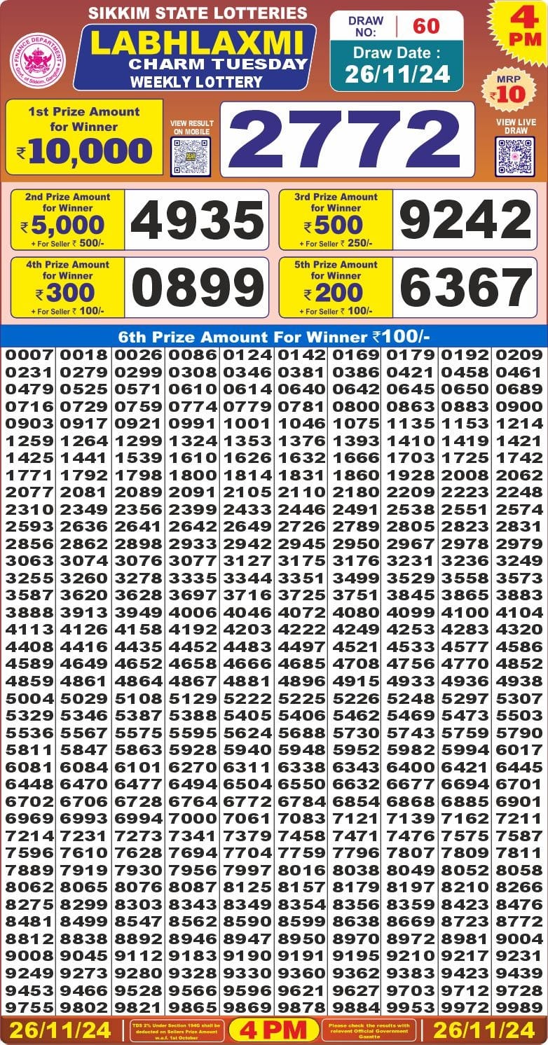 Labh Laxmi charm weekly 4PM Result 26.11.24