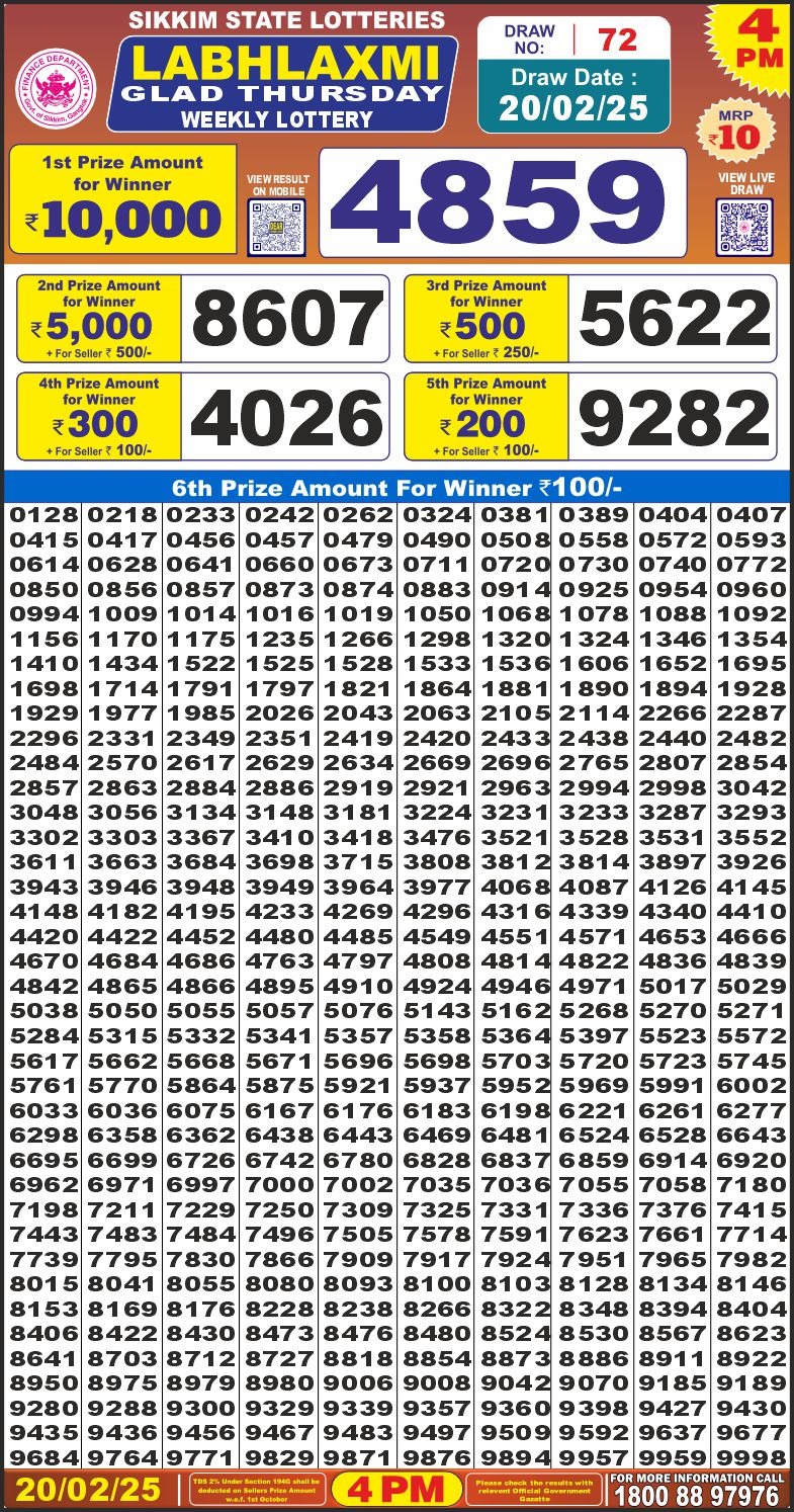 Labh Laxmi Glad weekly 4PM Result 20.2.25