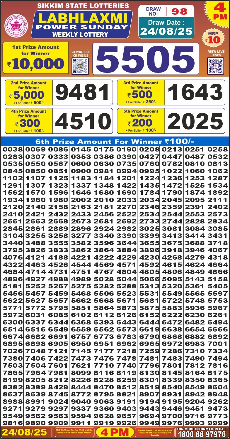 Labh Laxmi Power Weekly 4pm Result 24.08.2025