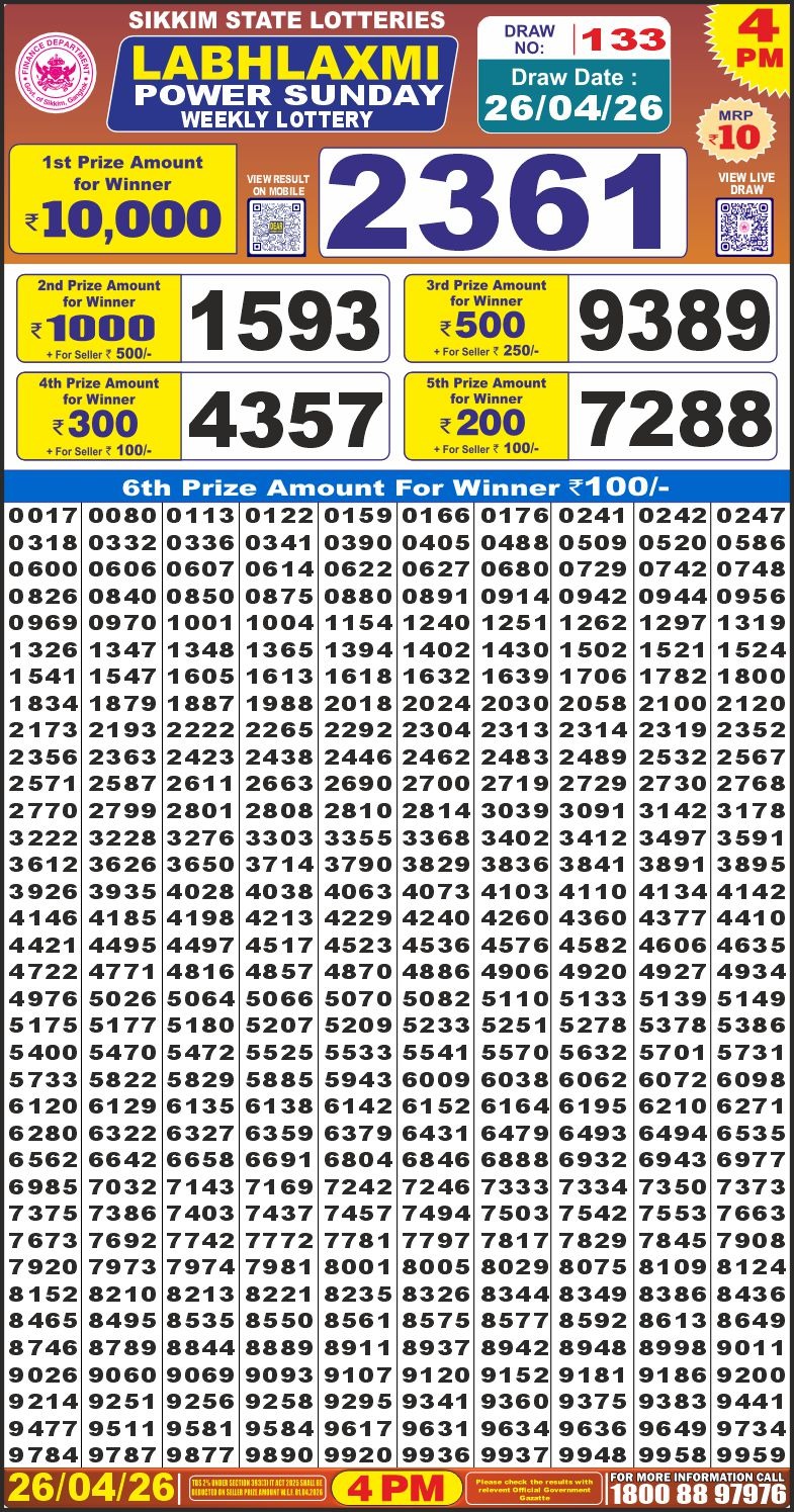 Labh Laxmi Power Weekly 4pm Result 26.04.2026