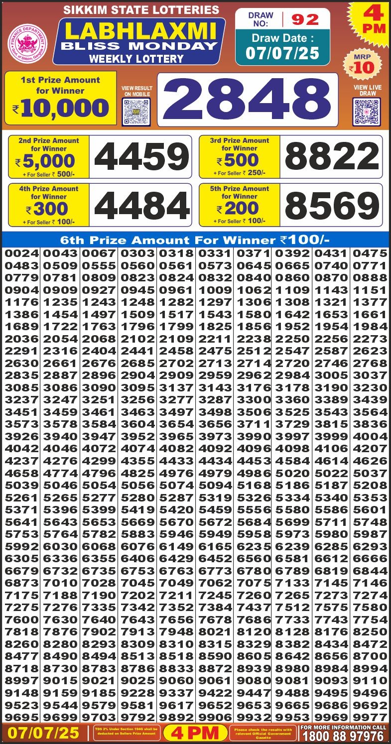 LabhLaxmi bliss weekly 4PM Result 07.07.2025