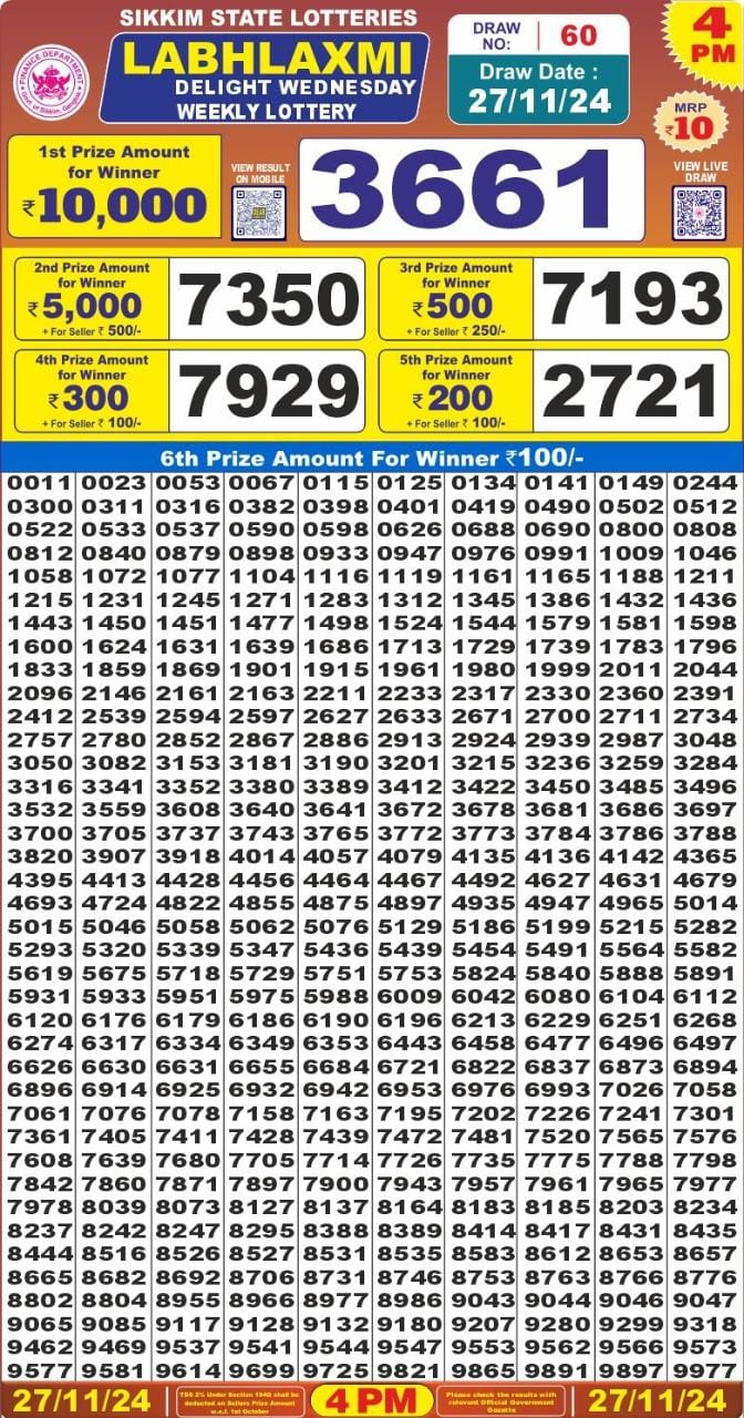 LabhLaxmi Delight weekly 4PM Result 27.11.24
