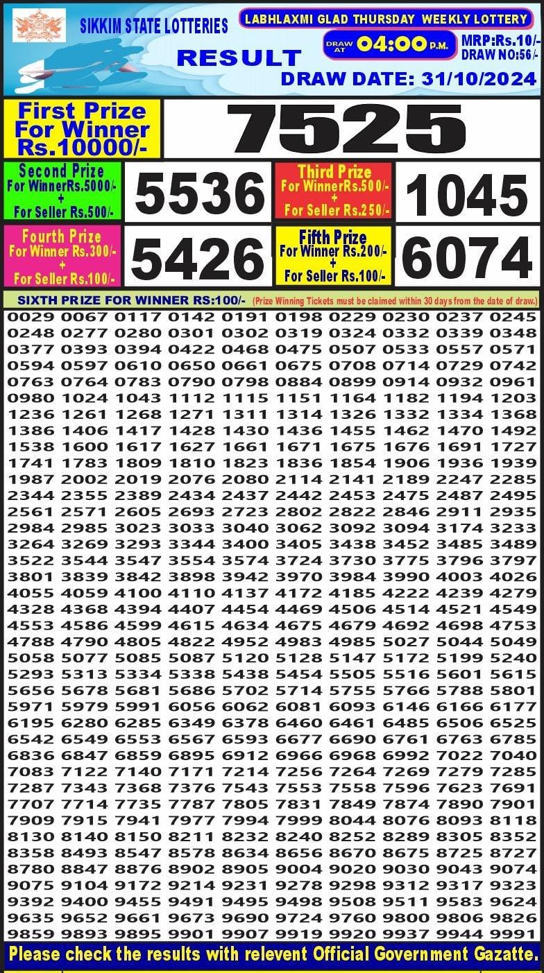 LabhLaxmi glad weekly 4PM Result 31.10.24
