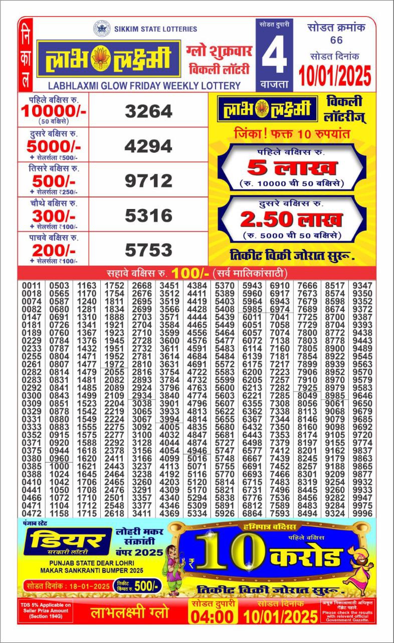 LabhLaxmi glow weekly 4PM Result 10.1.25