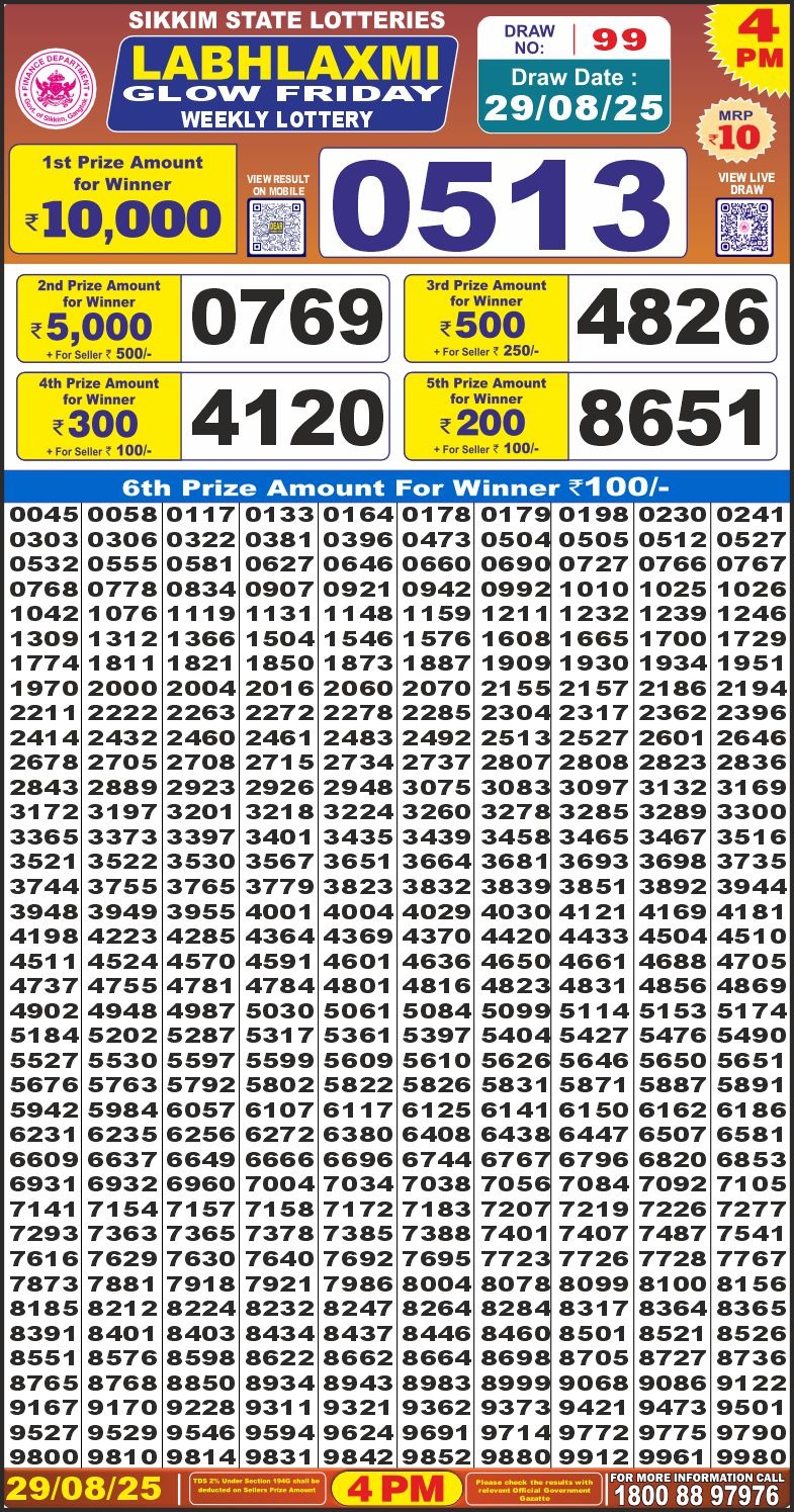 Labhlaxmi Glow Weekly 4pm Result 29.08.2025